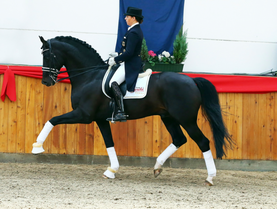 • 18 licensed sons including Collier (Champion Stallion Mecklenburg 2013), Cadeau Noir, Clapton, Cristall, Coal Diamond, Crown Royal, Cognac, Cazar • Coal Diamond - Vice Bundeschampion 3-year-old stallions (2013) • Charlotte - Winner of qualification, Bundeschampionat 3-year-old mares (2013) • Costa Brava - Bronze Medal, 4-year-old mares, Rastede & Warendorf (2019) • Christella - Champion Mare, Mecklenburg Elite Mare Show (2015) • 20+ offspring competing successfully at advanced (S) level dressage • Multiple Grand Prix horses including Chrysler (Hubertus Schmidt/Delia Eggenberger), Candescent (Alica Tarjan, USA), Cap Amour (Dong Seon Kim, Korea) • Highly valued as a broodmare sire (including sire Raven and Maxima Bella)