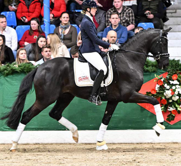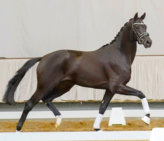The fine young sire Der König comes from Desperados FRH's far too short breeding career after his world career in the dressage arena. Still youthful in appearance, Der König can already show off his charm, long legs and strong movements. Typical of Desperados, Der König's stride is particularly good. His sire Desperados FRH, who died at the beginning of 2020, was at home on the world dressage stage for many years. Under Kristina Bröring-Sprehe, he won team gold at the Olympic Games as well as the World and European Championships and was the most successful dressage horse in the world in 2016. At the same time, the son of De Niro, who himself topped the WBFSH dressage sire ranking for many years, set breeding milestones. His 38 licensed sons include Destacado FRH, the winner of the 2020 Nuremberg Burg Pokal final, and the Grand Prix-winning Olympic stallion Destano. Desperados can already boast a total of 67 S-successful offspring. The dam Jazzmine is a Hanoverian daughter of the Dutch stallion Jazz, who was himself successful at Grand Prix level in the dressage arena and was listed several times in the WBFSH ranking as the most successful dressage sire in the world. The Jazz son Johnson currently leads this ranking. Jazzmine previously produced the Warendorf state stud stallion Florestanus in conjunction with Florestan I. The granddam Wironda is a direct daughter of the Hanoverian stallion legend Weltmeyer out of a daughter of the strong-moving thoroughbred Roncalli xx. When bred to Vivaldi, Wironda produced the licensed stallion Vancouver L. Wironda is also the maternal half-sister of the private stallion Bonheur and the successful advanced (S) level dressage stallion Brentana, both descended from Brentano II. Direct relatives include many successful advanced (S) level dressage horses such as Don Pleasure, Don Fangar, Dark Rose de Fangar and the Grand Prix mare Championesse 13.