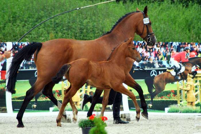 With Maurice Tebbel, Dia Corrado achieved placings in international 3* competitions. Now Ryan Sweetnam has taken over the reins and, in this short time, has already completed strong rounds up to 1.45m jumping! Dia Corrado's sons, now represented at all stallion licensing events, impress with their own performance and are usually found in the premium rings. Several of his daughters, registered as broodmares, have received the coveted state premium. Dia Corrado passes on his willingness to perform, as seen in Dia Cold, who completed his 50-day test with excellent marks, particularly for his scope and willingness to perform. His nearly 100 offspring, already successfully competing at the M** level, will reach the S level this year. Reserve champion at the 50-day test in Adelheidsdorf with top marks of 9.0, including for his scope and overall impression. His rideability was also rated 9.0 by the commission and the guest rider. He received the highest mark of 9.5 for his willingness to perform. Champion stallion of the 14-day test in Adelheidsdorf. His jumping ability in free jumping was awarded a 10.0. He received a 9.0 each for character and willingness to perform. These factors contributed to his jumping-focused final score of 9.43. He completed the FN sport test with an 8.65 and received a 9.0 for his style. His sire, Don Diarado, was highly successful at the 5* level, becoming German Vice Champion in 2020. A definite highlight of 2021 was his powerful jumping performance at the Tokyo Olympics. He also won the Grand Prix in Hagen and the Nations Cup in Sopot, achieving numerous other top-five finishes at the 5* level. St. Pr. St. Corrada, dam of Special Effect, has produced another promising stallion, Dia Corrado. Dia Corrado himself has achieved multiple high placings in S-level show jumping competitions under Lars Grafmüller, the breeder of this young stallion, and comes from the renowned Holsteiner dam line 173. His granddam, St.Pr.St. Corinna, produced the successful Quibell by Quintero, who competed successfully in S****-level show jumping with Henrik Eckermann of Sweden. K-Corinna's great-granddam is Lancaster by Latus II, who competed successfully in S*-level show jumping under Roland Engelbrecht. From the dam line: Successful show jumping horses in the S class: A-Dur R by Argentinus S**** under Tina Lund/Denmark, Ayla by Alexis S** under Arnaldo Bologni, Cirak by Cadillac S** under Radu Ilioi, Catani by Corrado I under Klaus-Dieter Türke, Romanus by Ramzes AA under Hans Günter Winkler, Philosophie 2 by Pacco II, Calico Joe 2 by Cornado, Camillo 151 by Cornet Obolensky, Lamabada by Lanero NRW, Quibell 5 by Quintero, Chando by Con Air, Countess by Contender, and many more.