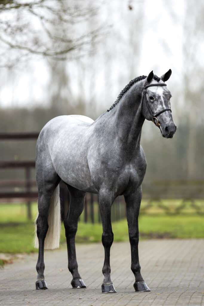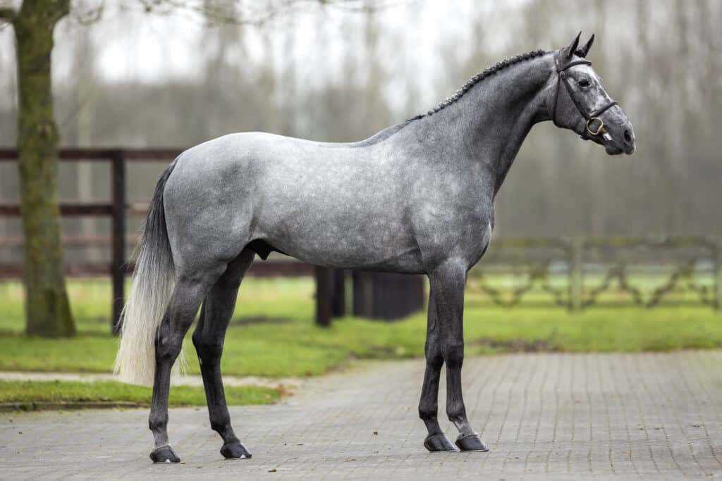 Born in 2016, Dorian Grey TN Z is a striking grey Zangersheide stallion by the Olympic-level sire Dominator 2000 Z out of the Chellano Z daughter Cegetti Z. This powerful pedigree blends some of the most influential jumping bloodlines including Diamant de Semilly, Cassini I and Contender. His dam line is equally proven, having already produced the international showjumper Darchello B and Grand Prix horses such as Phyra Z and Partner V2, demonstrating the consistent quality of this family. Licensed by the Zangersheide studbook in 2019, Dorian Grey TN Z immediately stood out for his exceptional reflexes, careful technique and athletic jumping style. Under saddle he has continued to impress with his light-footedness and scope, progressing through the young horse classes and successfully competing up to 1.40–1.45 m level. His offspring are already attracting attention at auctions and in young horse competitions, confirming his potential as a modern performance sire.