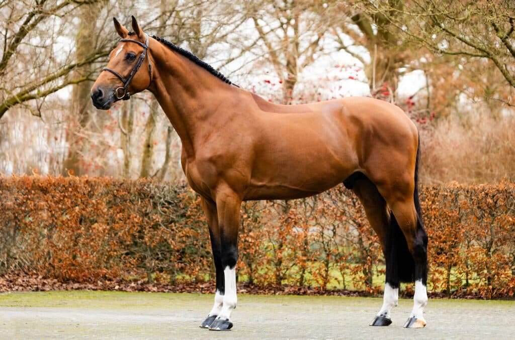 Born in 2020, Drummer 2000 TN Z is a modern Zangersheide showjumping stallion by the legendary Diamant de Semilly out of the elite Holsteiner mare China Touch Hero (by Chin Chin). Bred by Stud 2000 and standing with Team Nijhof, Drummer comes from one of the strongest Holsteiner mare families (Stamm 5054), a line that has produced numerous international showjumpers and approved stallions. His damline alone has produced multiple 1.50–1.60 m performers, making his pedigree one of the most proven in modern sport horse breeding. Drummer quickly demonstrated his natural ability with exceptional power, technique and rideability. He impressed during the KWPN performance test with a score of 83.5 points, highlighting his scope, balance and carefulness over fences. In competition he has already achieved several victories in the Blom Stallion Competition, remaining clear through multiple rounds and finals. With his exceptional pedigree, modern type and early sport results, Drummer 2000 TN Z is widely regarded as a promising stallion for both sport and breeding.