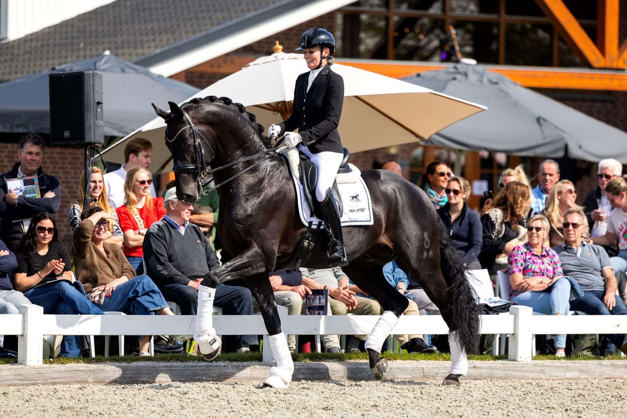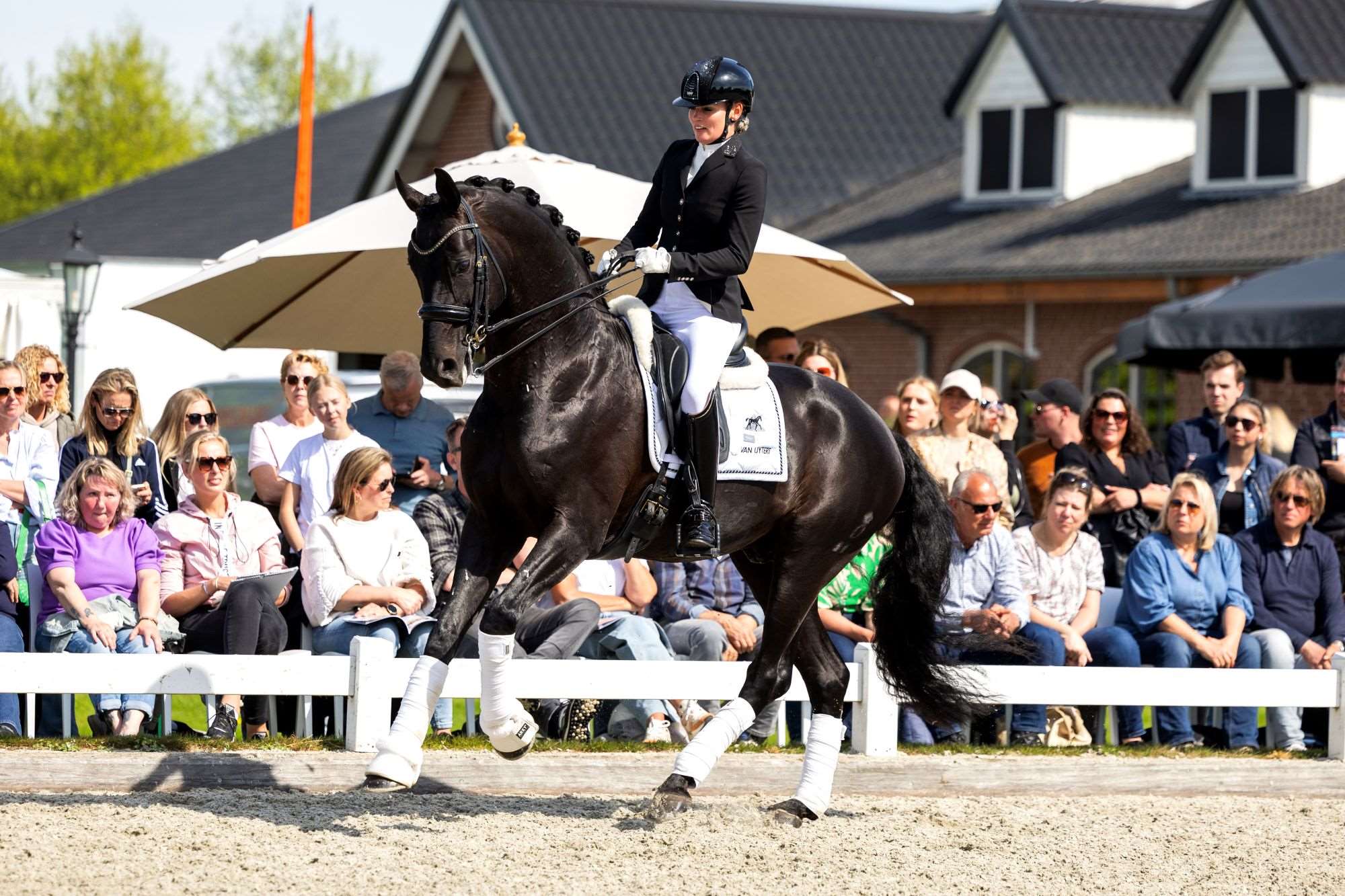 2025 - Winner of the Prix St. Georges Liempde with a beautiful score of 69.56% 2020 Sport test winner in Münster-Handorf with a very good score of 8.83 Ritigkeit 9.1 Step 9.2 Trot 8.4 Gallop 8.5 Total 8.83 Good 14-day test Schlieckau Setting 9.0 (Leistungsbereitschaft) Interior 9.0 Character 9.0 Ritigkeit 8.5 Gallop 8.5 Trot 8.0 Step 7.5 (Was a bit tense in his last test) Jumping 7.48 Fürst Dior has it all. The reserve champion of Mecklenburg introduces new blood into Dutch dressage horse breeding with German stallions that consistently stamp their offspring.
