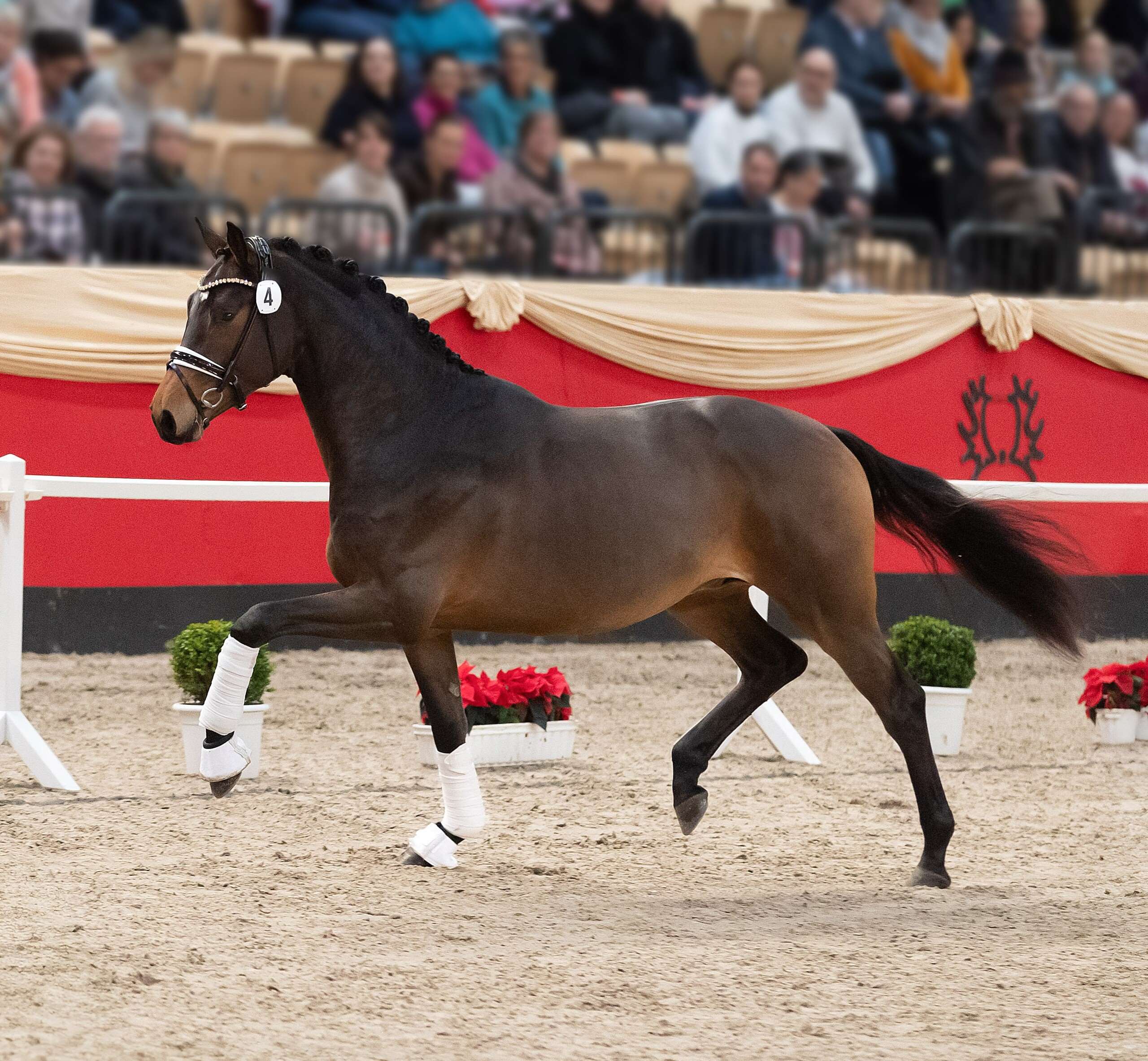 Premium Champion Stallion with World-Class Dressage Bloodlines Havertz dominated the 62nd Trakehner Stallion Market 2024, crowned as premium and champion stallion with exceptional type and outstanding movement.