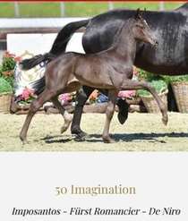 Although his first foals were born in 2019, Imposantos is already producing modern, elegant dressage horses with strong movement and excellent balance. His offspring are typically long-lined with expressive forehands, active hindlegs and elastic gaits. Notable offspring include: Imagination – high-priced Oldenburg auction foal sold for €137,500. Sarína – modern KWPN mare with D-OC status. Spectacle W – promising young stallion prospect by Totilas. Spacestar W – young KWPN stallion with modern dressage type. Talentos W – developing young sport prospect. Breeders particularly value his ability to pass on: Elastic, expressive movement Strong hindleg activity and balance Excellent rideability and temperament Modern dressage type with uphill conformation