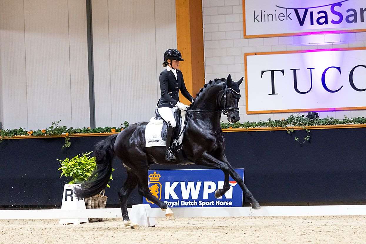 Lamborghini U.S. has consistently impressed judges with his athleticism and technique: Stallion Competition Kronenberg – 2nd place with 87.2 points Step: 8.2 | Trot: 8.8 | Gallop: 8.9 | Harmony: 9.0 | Total Impression: 8.7 Pavo Cup 2025 – Scores of 82.0 and 80.0 points Pavo Cup 2024 (4-year-old dressage horses) – Semi-final: 84.8% | Final: 83.6%, placing 8th Equisport Cup 3-year-old dressage horses 2023 – 3rd place with 86.2% Bart Bax praises him: “A chic and blood-made stallion with a very beautiful front, a lot of technique and mechanics in walking, and an expressive foreleg. He is attentive to his rider and loves to work. Care should be taken not to overwork him, but his talent and concentration are outstanding.”