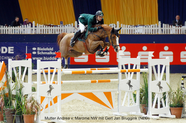 Olympic is a 2022-born chestnut Zangersheide stallion standing 169 cm, bred by Roos Stables. At his licensing in Verden, he was awarded premium stallion status, with the licensing committee praising his self-confident demeanor, powerful footing, energetic construction, and consistent jumping ability. Sired by international Grand Prix winner Ogano Sitte, who has produced over 100 offspring competing internationally and numerous licensed stallions including star sire Aganix du Seigneur, Olympic inherits exceptional jumping genetics. His dam Andrea was Gerd Jan Bruggink's former top horse, excelling as a particularly fast pair in show jumping up to 1.60m. The dam line is exceptionally strong, with grandmother Laika v. Voltaire producing not only Andrea and her full brother Vampire (also successful to 1.60m with Bruggink), but also being grandmother to three other international sport horses. Great-grandmother Elinda has produced 15 international sport horses through her descendants. Olympic demonstrates impressive basic gaits with a regulated walk, energetic hindquarter with very good knee action in trot, and an uphill, energetic, balanced canter. His body structure is characterized by particular correctness, typical uphill format, and harmonious proportions. Licensed for Hannover, Oldenburg International, Holstein, and other associations on request, Olympic stands at Hengststation Völz with a cover charge of €300 plus VAT and pregnancy fee of €500 plus VAT.