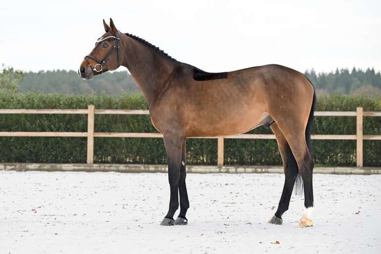 Tornado vd Bisschop is a promising Belgian Warmblood stallion born in 2019, sired by the Grand Prix stallion United Touch S and out of Phassia vd Bisschop, a daughter of Comme Il Faut. This pedigree combines some of the most influential modern jumping bloodlines, blending the scope and rideability of Untouchable-line genetics with the proven power of the Cornet Obolensky family. Bred by Stal Den Bisschop, one of Belgium’s leading sport horse breeding programs, Tornado vd Bisschop comes from a highly productive damline that has already produced multiple international jumpers competing up to 1.40–1.45m level. As a young stallion competing in the young horse circuit and standing at Hengststation Sven Völz, he has gained attention for his careful technique, athletic movement and strong jumping ability.